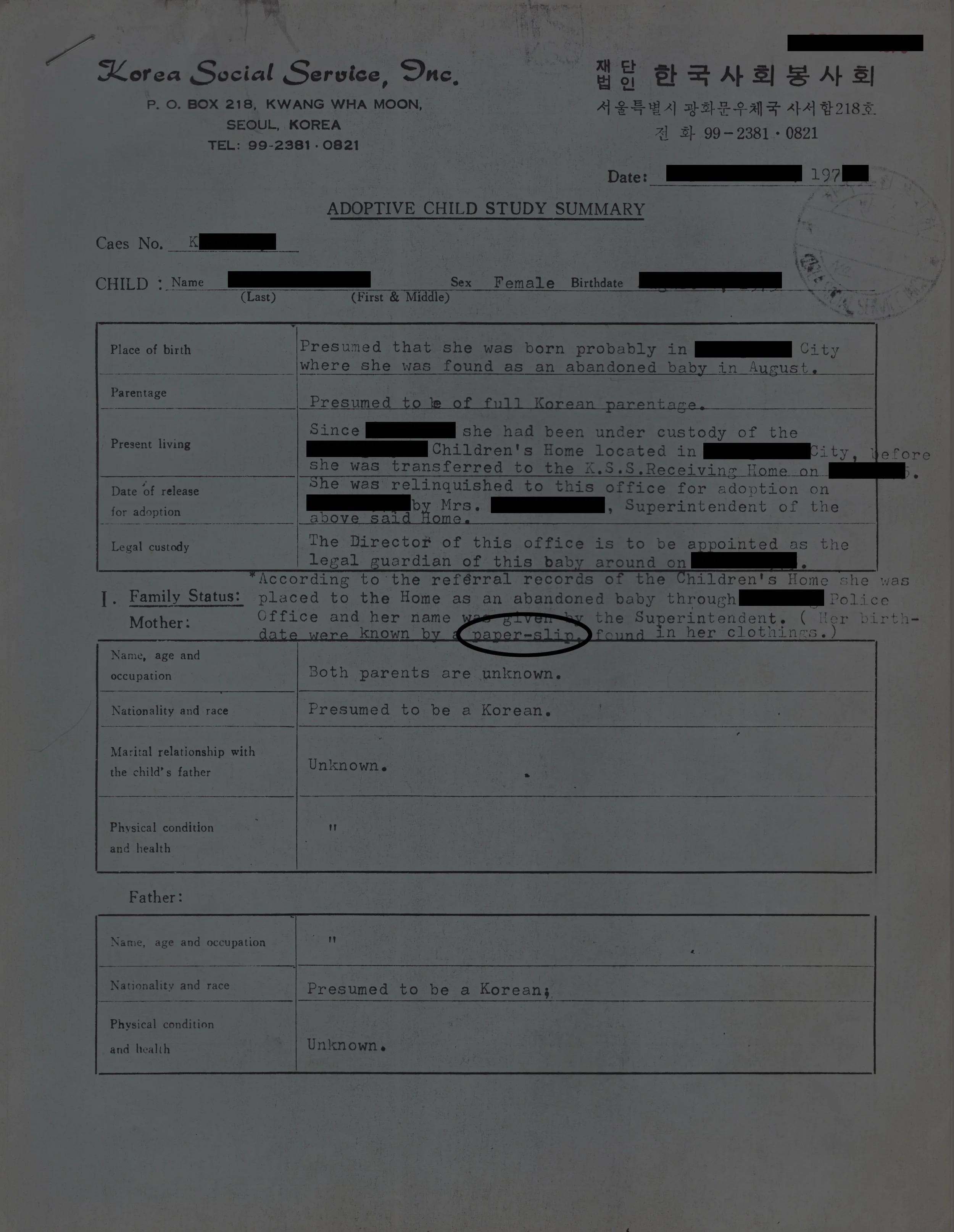 We are the living memory of the 20,000 Korean Adoptees who were adopted to the US, Netherlands, Denmark, and Switzerland from 1964-2012 through Korea Social Service (KSS) — S. Korea’s smallest of the 4 major Korean Adoption Agencies.