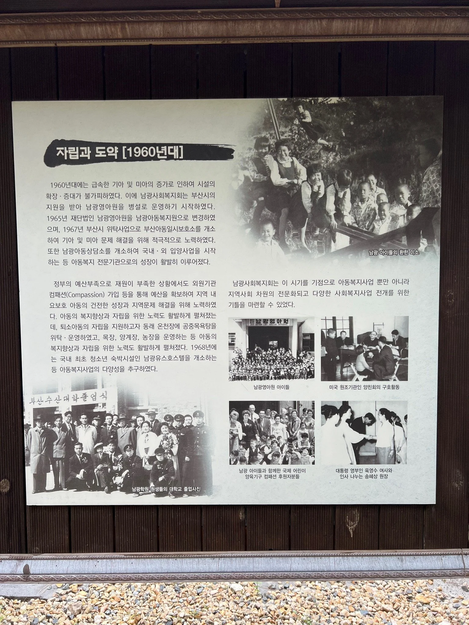 These (translated to English) signs give the most complete history of Nam Kwang Orphanage in Busan that we currently know of. Please note that “Nam Kwang” changed names and locations over the years, but the name “Nam Kwang” always was a part of the name.