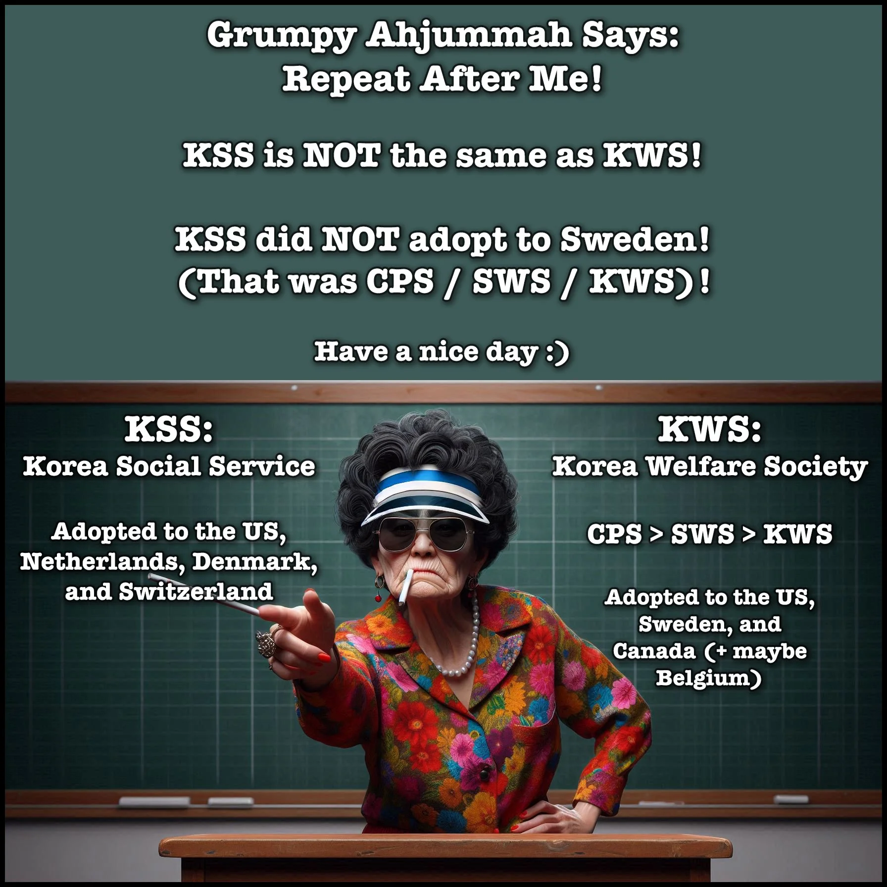 *Please note that KSS (Korea Social Service) did NOT adopt to Sweden! That was CPS / SWS / KWS.