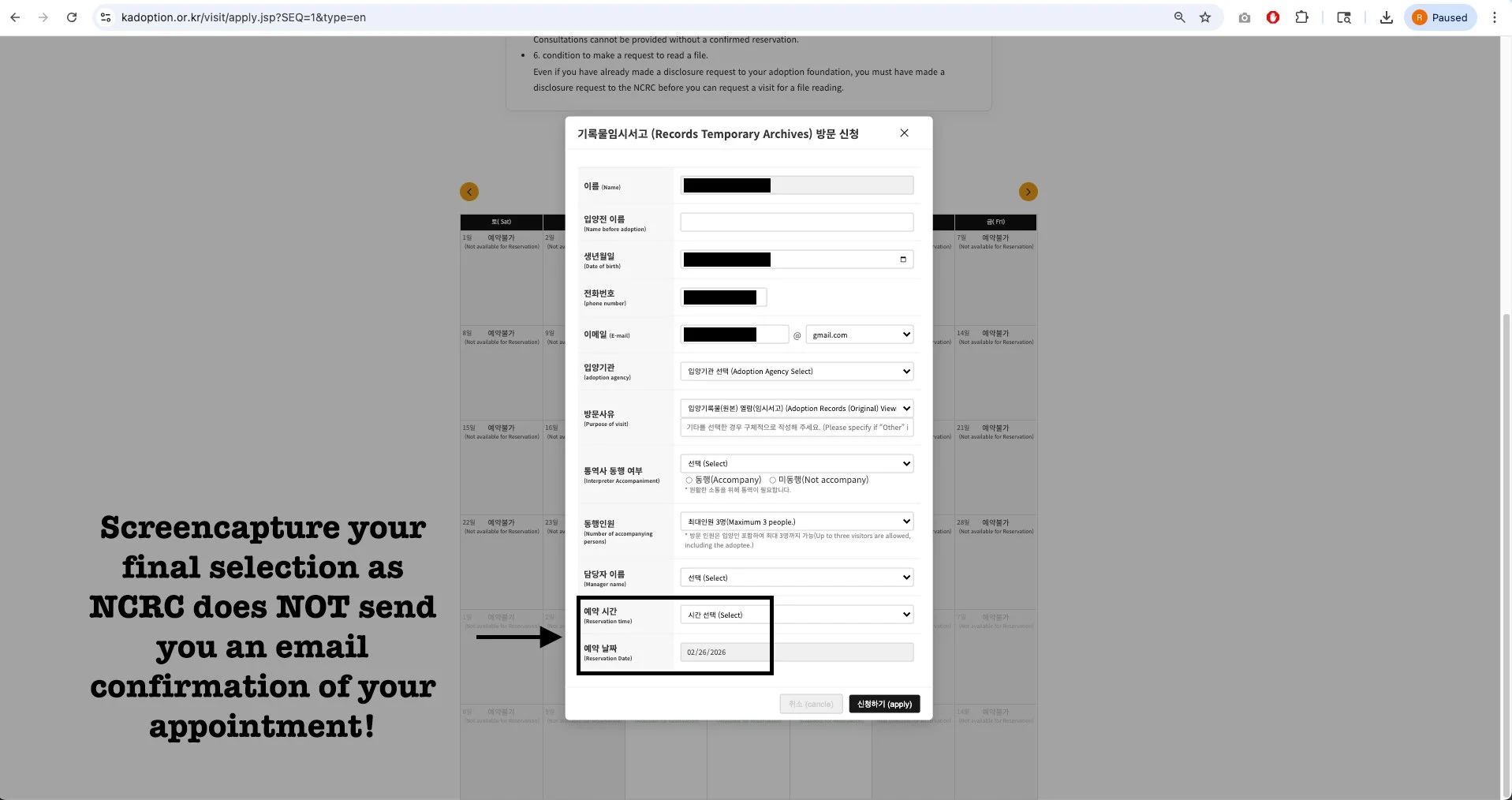 Please note that NCRC only offers 3 appointments per day / 3 times per week! Note that the SUMMER is when the most Adoptees go to Korea, so please be advised. IKAA in October 2026 will also impact the available number of appointments in Fall 2026.