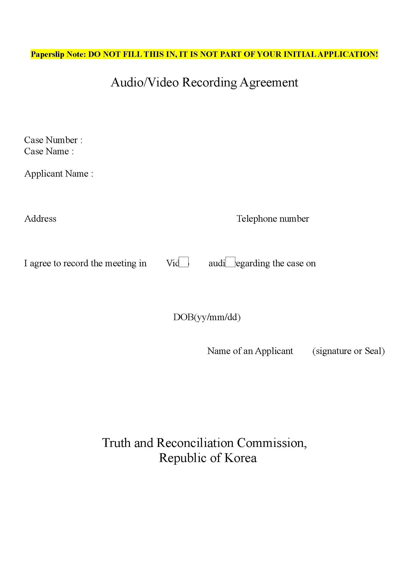 There are blank WORD and PDF documents in ENGLISH and KOREAN which you can download from the link above. These are better formatted than the application forms from the TRC 3 website!