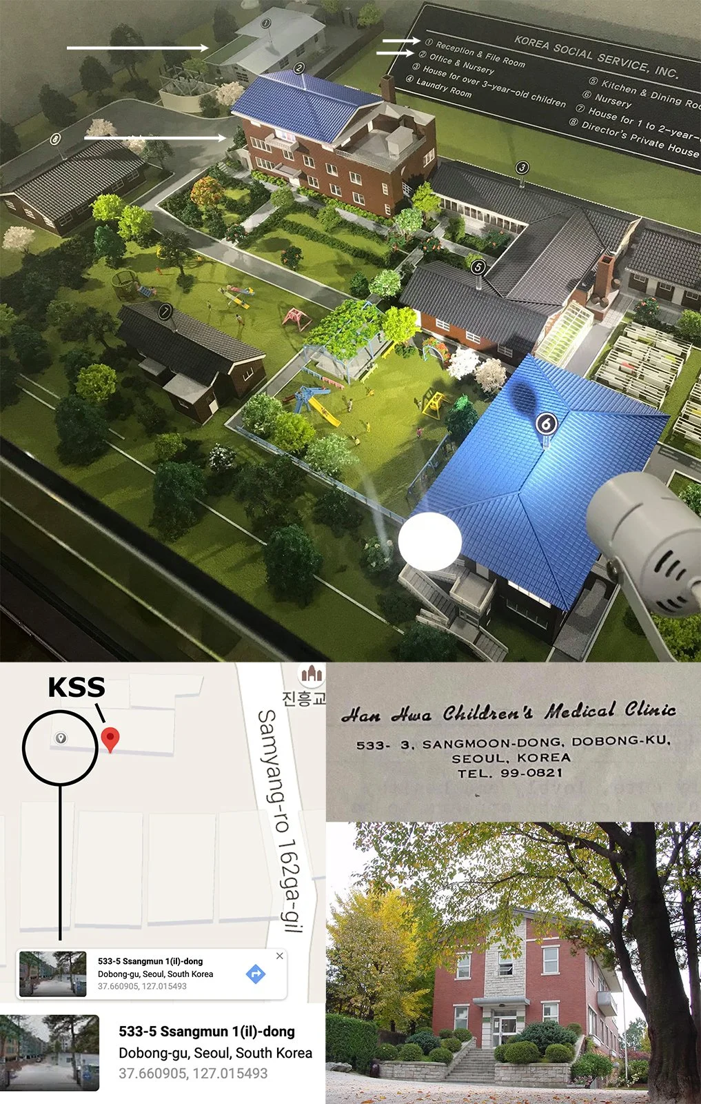 KSS processed overseas adoptions from 1964-2012. I do not know the exact year that KSS built its main campus in Seoul, pictured below in the diorama they had at their former Post Adoption Services building in Seoul (Building 1, upper left in the image below).