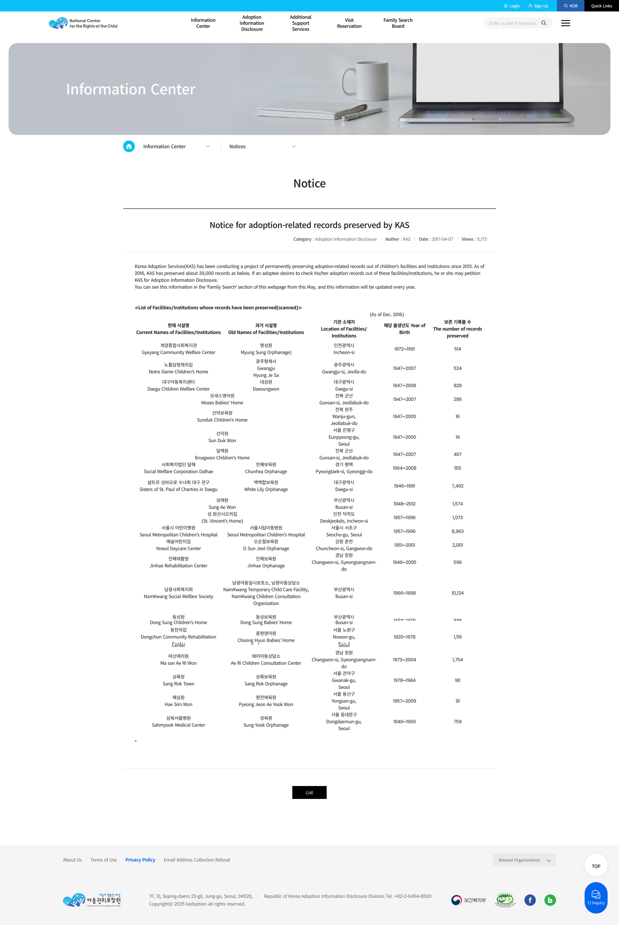 Above: A recent Google search redirects to the NEW KAS website, where the old KAS / NCRC list titled: “List of Facilities / Institutions whose records have been preserved (scanned)” no longer exists.