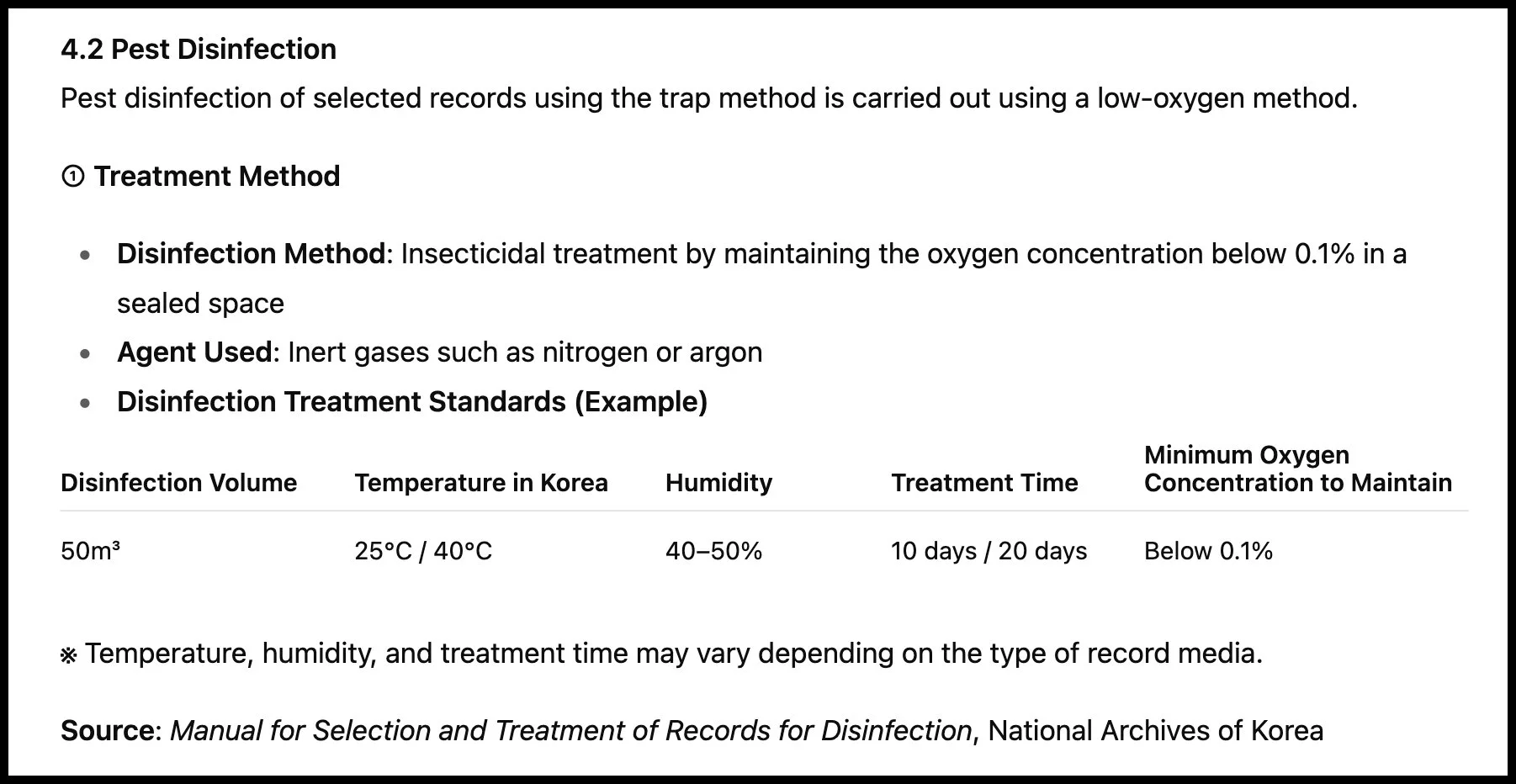 Above: Records treatment and disinfection procedures – Source: National Archives