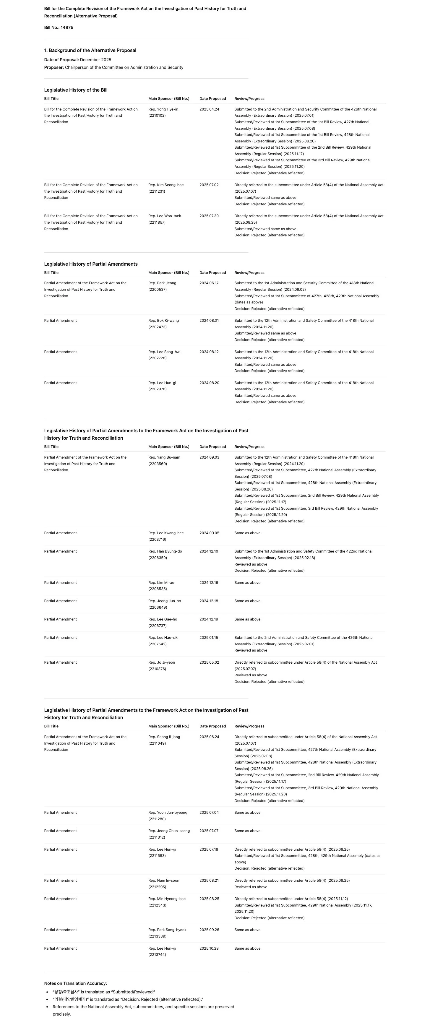 Full Amendment to the Framework Act on Clearing Up Past Incidents for Truth and Reconciliation (Alternative Bill)